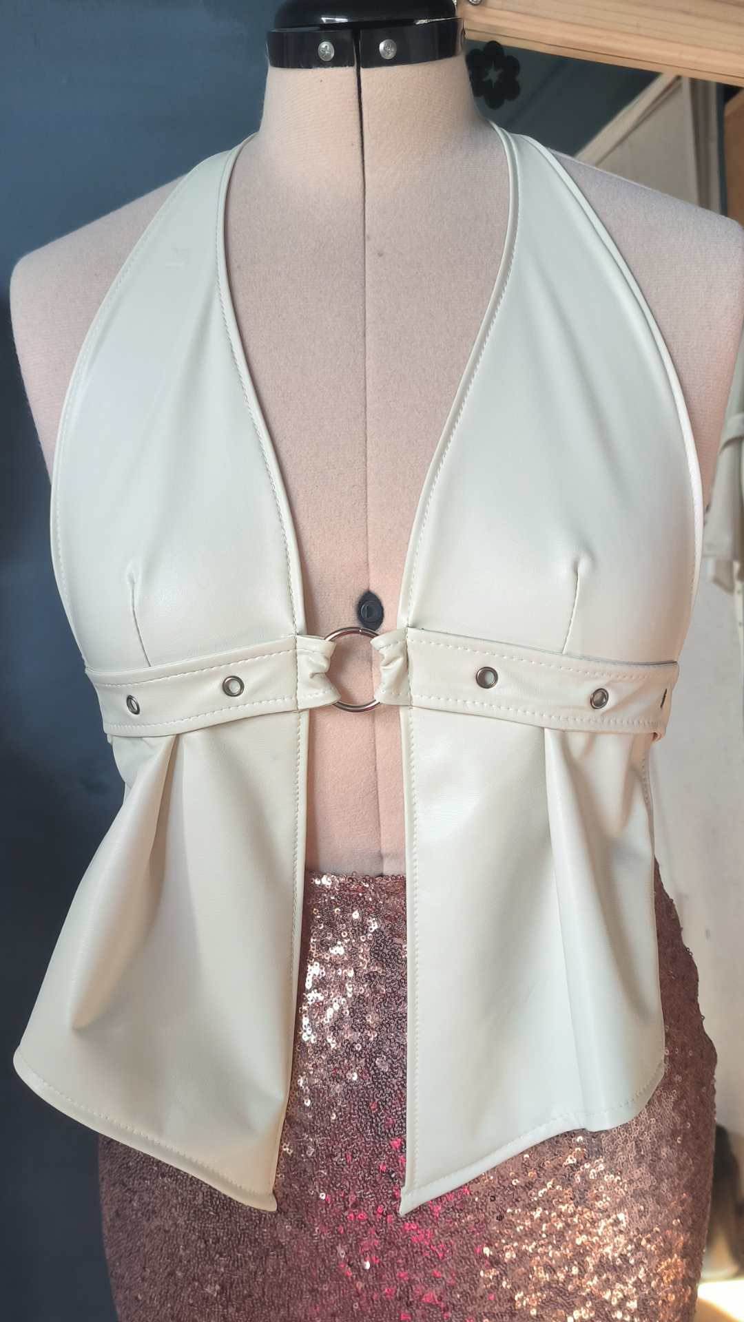 Top ecocuero elasticado Alta densidad Cinturón completo ajustable Disponible en tallas XS a XL